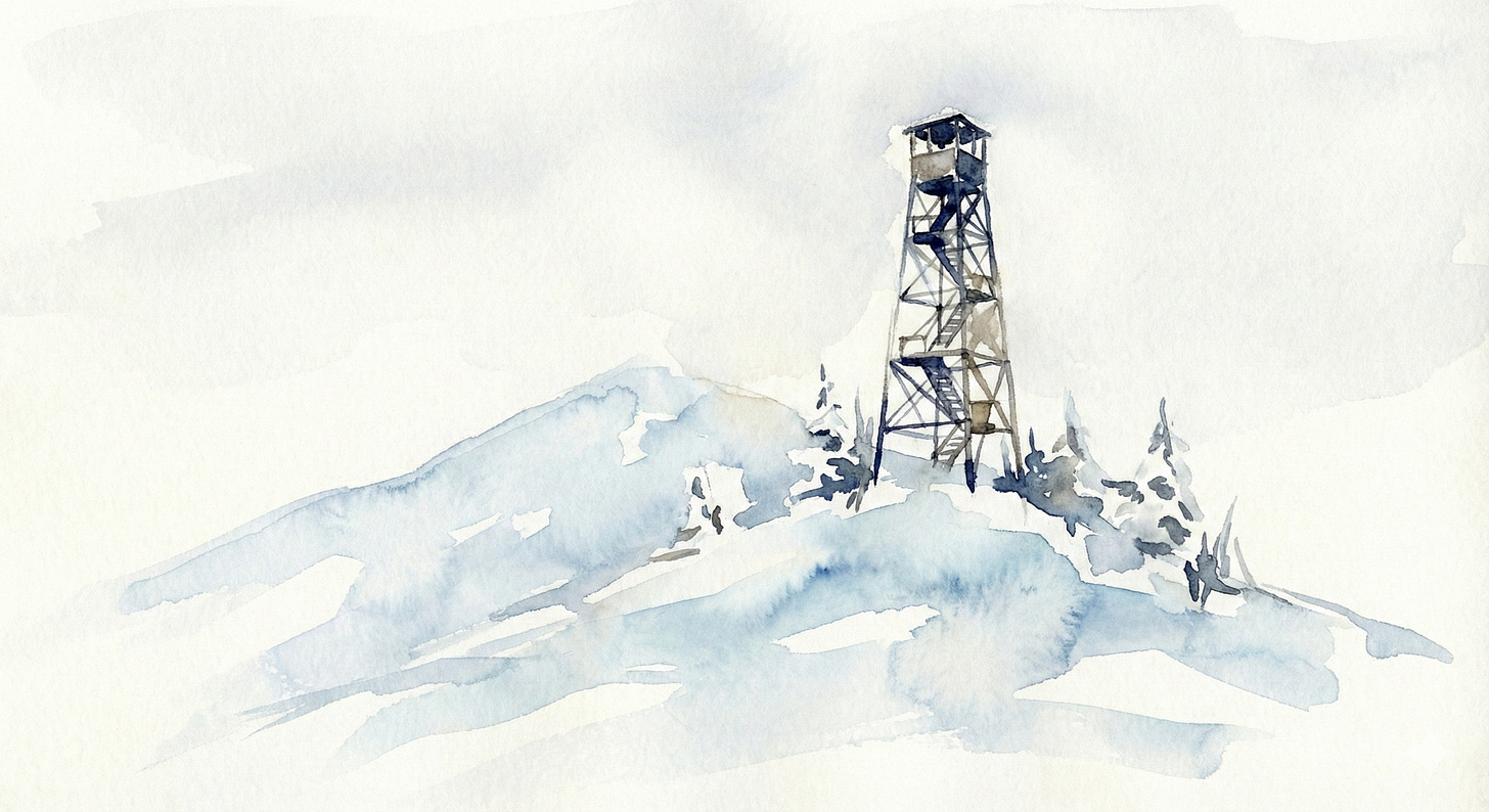 I kept looking. Hiked four hours in the Catskills at what felt like minus ten Celsius (14°F), reaching the fire tower on Mount Tremper in the snow, turning the question over. Got home. Built a fire. Kept researching. Got into trouble for spending too much time with my sompompie (my husband's term — literally "your little robot friend"). And the pattern kept appearing.
